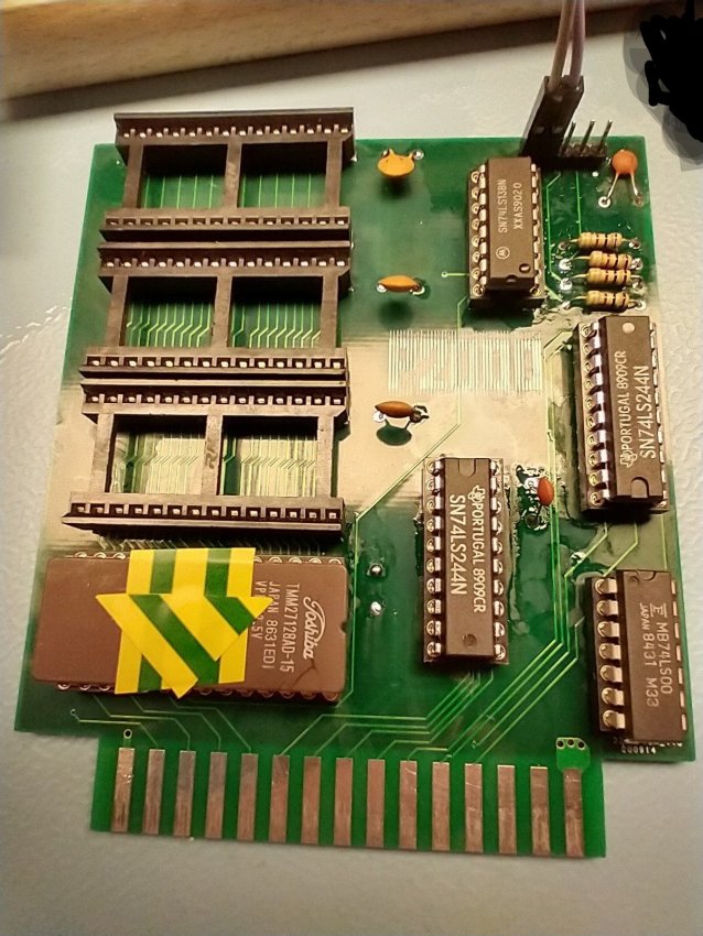 De eproms die ik geprobeerd heb zijn de Toshiba TMM27128AD-15 en de Fujitsu MBM27128-25. De data staat er goed op, en het ontwerp heb ik tig keer nagelopen, dus mijn hoop was dat het aan de manier van opslaan lag .