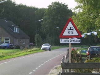 Keetie 27 september 2011 gestart 27 september 2011 gestart Speciale verkeersborden. Een paar dagen geleden heb ik een bijzonder speciaal verkeersbord kunnen toevoegen aan mijn kleine verzameling bijzondere verkeersborden: Wat begon met een kip werd uitgebreid met een egelbord, waarvan dit oude blauwe al gauw door de gemeente vervangen werd door een nieuwe rode. Soms zijn er aardige verkeersborden te zien, maar krijg je niet de kans even te stoppen om een kiekje te maken, het gaat in een flits langs je heen. Andere keren lukt dat weer wel en kun je rustig je gang gaan... Toch zijn er zo af en toe lopend ook wel enige te bewonderen: Het leukste bijzondere verkeersbord vind ik die van vrijdag de 13e. Als het regent en de zon schijnt op vrijdag de 13e dan bakken de heksen pannenkoeken! Jammer dat het bord zo bevuild is, ik kan me echt niet meer herinneren waar de foto genomen is. Het was ergens in Drenthe. Quote