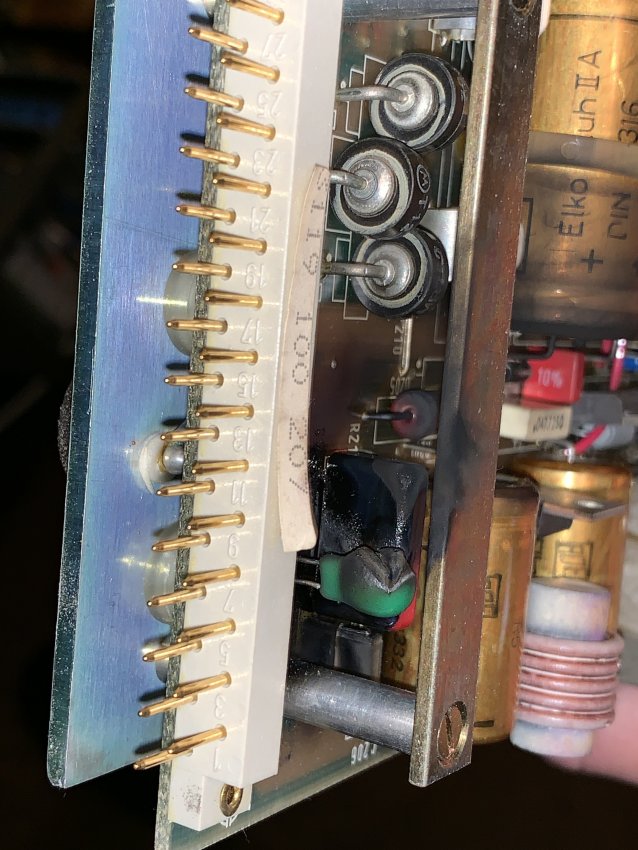 Minuteman 27 februari 2019 gepost Auteur 27 februari 2019 gepost Het solderen van de tentaal viel mij alles mee, de nieuwe moest even gevouwen worden en liet zich daarna makkelijk plaatsen. Hoewel ik niets had verwacht ging de machine toch al voor een deel aan en liet zich iets bedienen. De machine heeft een uur aangestaan zonder noemenswaardige problemen. Voedingen doen het goed, al zullen ze nog wel verder gereviseerd en vernieuwd moeten worden. Aangezien de voeding ontbreekt voor het andere deel van de machine is gekeken naar de reserve BCN. Daar zit immers nog een zelfde voeding in. Standaard met dit soort oude apparatuur sneuvelen er wel wat condensatoren. En ja hoor, ook bij deze voeding duurde het nog geen 10 seconden voordat de boel plofte. (ik zou zo onderhand beter moeten weten en ze preventief vervangen). Maar goed, die voeding ook uit elkaar gehaald en de dader was al snel gevonden. Het was vast gezellig want het dak was eraf. Er zitten er 2 in bij deze voeding en ze zijn hetzelfde. Vanavond eens kijken waar ik er 2 verse kan scoren. Ik hoop dat ik jullie zo onderhand niet al te veel verveel met mijn zoektocht om de Medisch Centrum West banden afgespeeld te krijgen. Dit is overigens het resultaat na het herstel van de eerste voeding. Het apparaat doet iets ! Quote