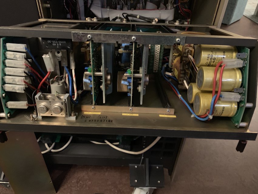 Minuteman 19 februari 2019 gepost Auteur 19 februari 2019 gepost Nog even een update ter leering ende vermaak. Bij nadere beschouwing blijkt dat een tentaal condensator in een van de voedingsbordjes de geest heeft gegeven. Volgens mij gewoon door ouderdom ik zie voor de rest niets aan de voeding. Ik vond hem wel wat van Mick Jagger hebben. Het was het rechter voedingsbord Gelukkig had ik een extra BCN meegesleept en daar zat een gelijk bord in. Het Bosch nummer op het bord was het zelfde al zijn het 2 verschillende fabrikanten. De defecte is de onderste van Bosch. Deze hebben we maar weer geplaatst maar het apparaat hebben we nog niet aangezet wat we hadden een onverwachte verassing. Op de plek waar de linkervoeding hoort te zitten zit namelijk niets. Deze voeding stuurt het bord aan waar de kaarten inzitten maar hij ontbreekt compleet. Gelijk bedacht ik mij dat de condensator misschien als gevolg hiervan de geest heeft gegeven, maar het lijkt een compleet gescheiden deel van de machine te zijn. Dit is wel een sneu gezicht.... En zo hoort het te zijn. Een snelle blik in de reserve BCN leerde dat er daar nog wel eentje zat en qua aansluitingen lijkt het wel op wat ontbreekt. Van de week gaan we eea meten en vergelijken qua draden, aansluitingen etc. en als het hetzelfde lijkt ( en na goedkeuring van Integra 😎) gaan we deze voeding overplaatsen. Nieuwe voedingen zijn nog wel in Duitsland overigens. Daarna maar eens een plan maken hoe het apparaat in te schakelen en aan Integra vragen wanneer hij misschien een keer in de buurt is voor wat assistentie 🙏 Quote