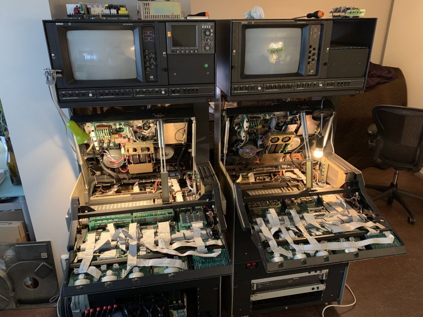 Integra 7 maart 2019 gepost 7 maart 2019 gepost 49 minuten geleden, Minuteman zei: Vandaag eens een externe monitor eraan gehangen om te kijken of er wat te zien is en warempel. Als de machine opstart (wat niet lukt dus) speelt hij wel heel even beeld af. Ik heb een testtape die ik hiervoor kan gebruiken in de machine gedaan en gekeken wat er gebeurd. In die paar seconden lijkt het hele video circuit het dus wel te doen. Van het aflezen van de drum, de doorgifte in de kaartenbak en de uitvoer door de electronica heen naar buiten, werkt dus. De kwestie lijkt zich dus te beperken tot het loopwerk, nog weer extra de moeite waard om er wat van proberen te maken. O ja, de interne monitor is er mee opgehouden. Die deed het vorige week nog wel maar heeft nu de pijp echt aan Maarten gegeven, weer een klusje erbij. Die Bosch monitoren zijn erg slecht, gaan vaak stuk, beeld is matig (als er nog beeld in zit, buis gaat niet lang mee) Ik zou daar geen tijd in steken maar gewoon een mooi alternatief voor zoeken... Ikegami, Panasonic, Sony of eventueel Barco Quote