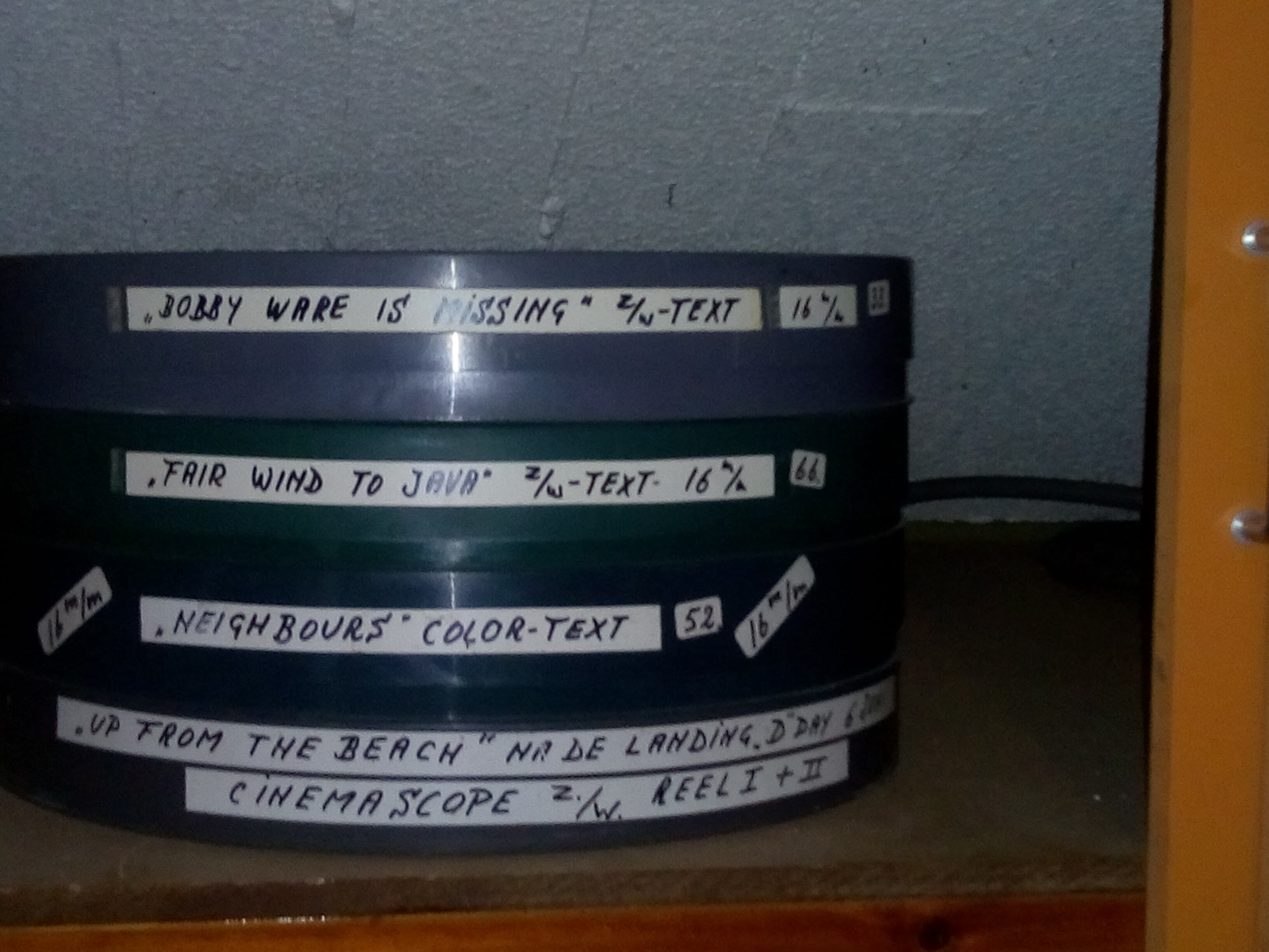 Spiny Norman 1 mei 2021 gepost Auteur 1 mei 2021 gepost 4 hours ago, djkoelkast said: Achtergebleven moet ik iets nuanceren. Ik weet niet alles, maar even grofweg het verhaal. Het filmhuis in Den Helder zat vroeger op een andere locatie dan nu (dichter bij de marinehaven) en daar was een vrijwilliger Hans van der Molen. Een filmverzamelaar. Hij schijnt ook in die tijd thuis of in een garage ofzo films te hebben gedraaid. Onder andere soft-erotiek, voor onder andere mariniers. Dat ging dus verder buiten het filmhuis om en was misschien zelfs al voor die tijd, die details ken ik niet. In elk geval had hij vele films, vele projectors en vele andere spullen. Mijn collega (die er nog altijd werkt), tevens mentor van het filmhuis was goed bevriend met deze Hans van der Molen. Toen Hans op sterven lag heeft collega Gerard beloofd dat alles een goede plek zou krijgen. Na het overlijden van van der Molen zijn ze al zijn spullen gaan uitzoeken. Het schijnt in elke kamer gelegen te hebben, overal, tot op het plafond. En een garagebox. Niet alleen films, maar ook klokken. Tot in de badkamer aan toe klokken. Dit is zo'n mooi verhaal, het is jammer dat er geen beelden zijn, anders had ik er graag een documentaire over gemaakt. Enfin. Er kwamen uit die garagebox ongelooflijk veel blikken met films. Heel erg veel 16mm en nog veel meer 35mm. En een heel groot deel was nitraatfilm. Deze films heeft collega Gerard namens Hans en het filmhuis geschonken aan Eye. Ze hebben twee busjes vol met films die kant op gebracht. Het hele verhaal heeft op de site van Eye gestaan, maar of het is verplaatst, of verdwenen. Er is gelukkig nog een archive-capture van, het begint hier: https://web.archive.org/web/20190418032328/https://www.eyefilm.nl/en/notes-from-a-nitrate-beginner en dan hier: https://web.archive.org/web/20190418022453/https://www.eyefilm.nl/en/finishing-the-van-der-molenmanshanden-collection-findings-and-conclusions Een deel ervan was geen nitraat, maar gewoon "moderne" film. Daar is een deel van achtergebleven in het filmhuis. Een aantal van die films zijn waarschijnlijk weer afkomstig uit de oude bioscoop Tivoli in Den Helder, blijkbaar zijn er een aantal speelfims toen niet terug naar de distributeur gegaan. De film Schatjes! zat nog netjes in een aantal aktes in aparte blikken. Ik heb die samen met een andere collega Cor aan elkaar geplakt. Helaas is Cor door dementie nu niet meer in staat in het filmhuis te helpen, maar hij heeft me wel opweg geholpen met het plakken van aktes tot een complete film. Ik heb alle 16mm en 8mm die er nu nog ligt gedocumenteerd, foto's, een sheet met wat wat is etc. Daar ben ik even ingedoken, op 35mm ligt er o.a.: Carosello Napolitano, Fanny Hill Op 16mm: The story of Rip van Winkel De snoepwinkel Mac. Sennet Klucht The great chase Klucht The girl in white 1952 USA Inspector Mark Saber Van erts tot rail (Ned. Titels) D'iberville episode Le Transfuge Flores Indie 6 Zweedsen in een Tiroler pensionaat 6 Blondjes in de Alpen Beichte Einer Liebestollen In Gasthaus Zum Scharfen Hirschen Adventures of a plumbers mate Bobby Ware is Missing Fair Wind to Java Neighbours Up From The Beach Coming Home Baby Born Erect Treasure blues (Klucht) Brand op tankers (Fire fighting on tankers) Der lange Weg zu neuen Apfelsorten Inert gas systems En zelfs de One flew over the cuckoos nest-variant uit Nederland: Te gek om los te lopen. Niet doorheen te komen trouwens. Staat op 2 spoelen. Een paar van de foto's die ik maakte, waar ook weer wat 8mm bij zit: Ons aller @samba-boy heeft me hier ook nog mee geholpen, om alles uit te zoeken. Ah ja, dat verklaart wel veel. Zitten best enkele bijzondere vondsten tussen. Tussen de porno door is "Neighbours" '52 dan weer een spraakmakende kunstfilm. Sowieso veel uit de vroege jaren vijftig. Treasure Blues is uit 1953 waarschijnlijk, ook niet gek. Rip van Winkle moet een stomme film zijn van voor WOI. Kan het zijn dat het Wheeler & Woolsey zijn in High Flyers (op de laatste foto)? Mark Saber zag ik laatst nog ergens voorbij komen... Quote